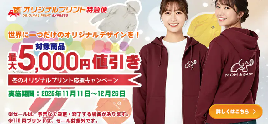 オリジナルプリント特急便では、幅広いサイズをご用意しております。レディースサイズからメンズの大きめサイズの3XL。そして、キッズサイズの110~150㎝といったお子さんのお遊戯会や運動会の出し物など、クラスで合わせた衣装が欲しいといった先生や保護者の方にもご利用いただいております。転写プリント・シルクスクリーン印刷といったクオリティーの高いプリントを施し、激安価格でプリントTシャツを制作させていただきます。