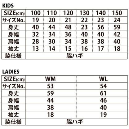 キッズ・レディースサイズ表
