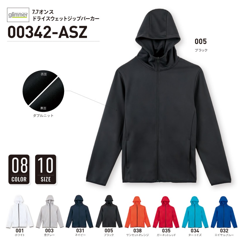 品番 00342-ASZ 7.7オンス ドライ スウェット ジップ パーカー