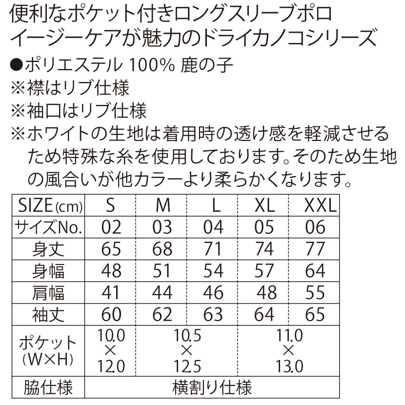 便利なポケット付きロングスリーブポロイージーケアが魅力のドライカノコシリーズ
