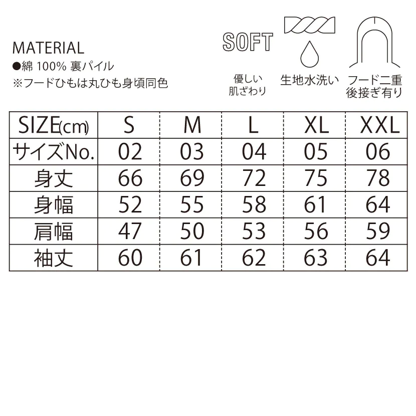 | 素材 | 綿100% 裏パイル フードひもは丸ひも身頃同色 |
